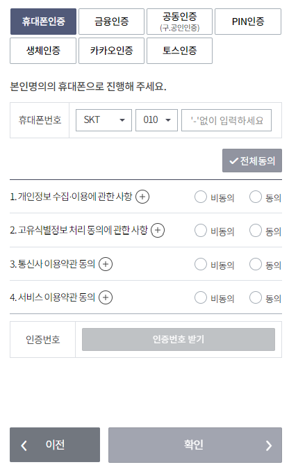 원하는 방식으로 본인인증을 진행합니다.