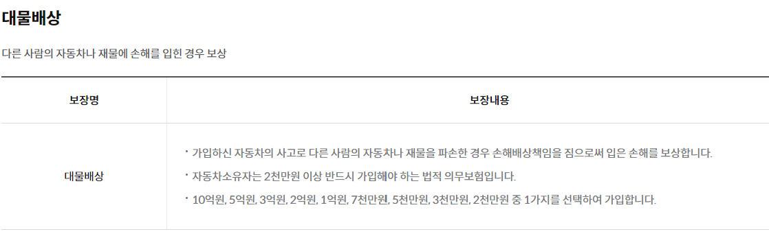 삼성화재 다이렉트 자동차보험 보장내용