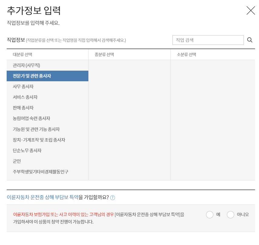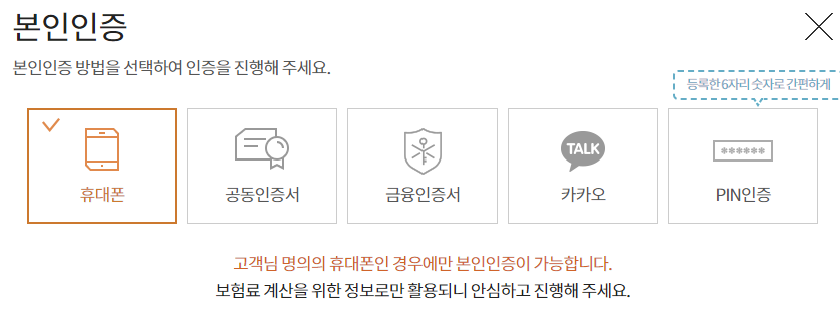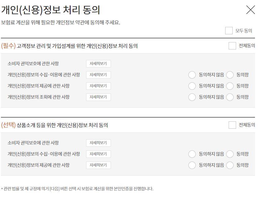 보험료 계산을 위한 개인정보 처리에 동의를 합니다.