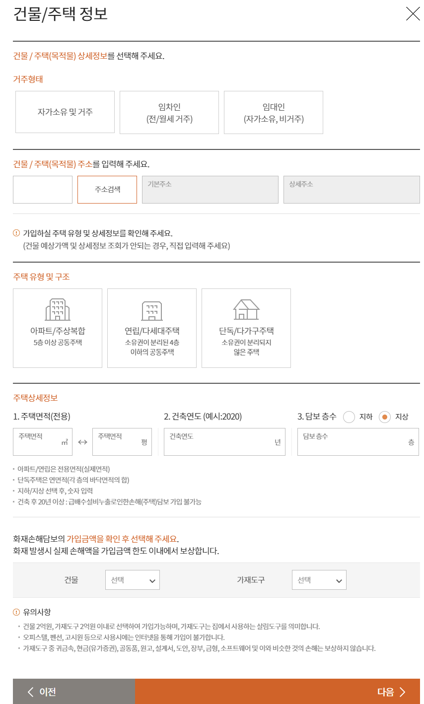 주택 정보를 입력 합니다. 그럼 보험료가 계산됩니다.