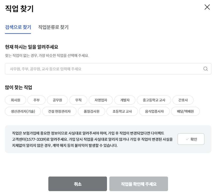 직업 정보를 정확하게 입력하지 않거나 가입 후 직업이 변경된 사실을 알리지 않은 경우 계약 해지 등의 불이익을 받을 수 있습니다.