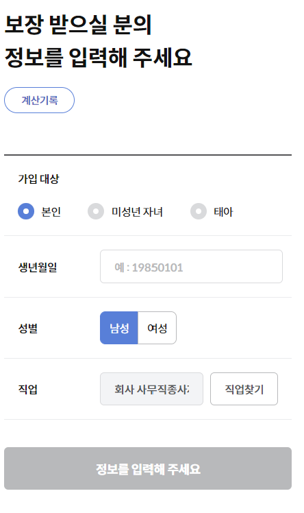 위 정보는 회사사무직 , 남자 30세 기준으로 산출된 보험료입니다.