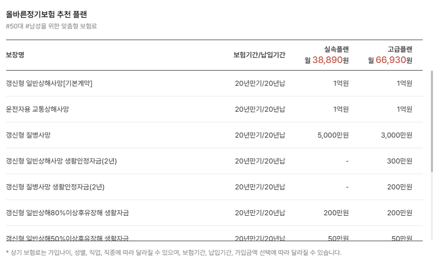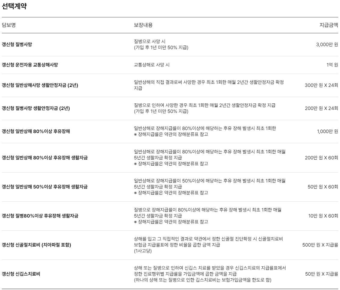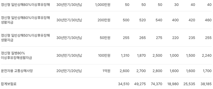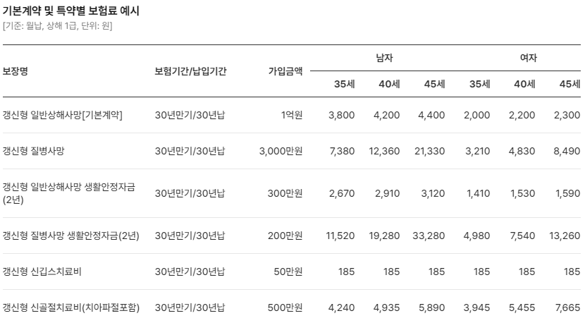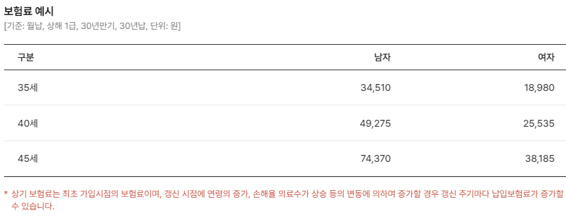 - 상기 보험료는 가입나이, 성별, 직업, 직종에 따라 달라질 수 있으며, 보험기간, 납입기간, 가입금액 선택에 따라 달라질 수 있습니다.