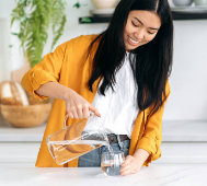 물은 신진대사와 노폐물 배출에 필수적인 음료입니다. 충분한 수분 섭취는 신진대사를 원활하게 하게 하여 좋습니다.