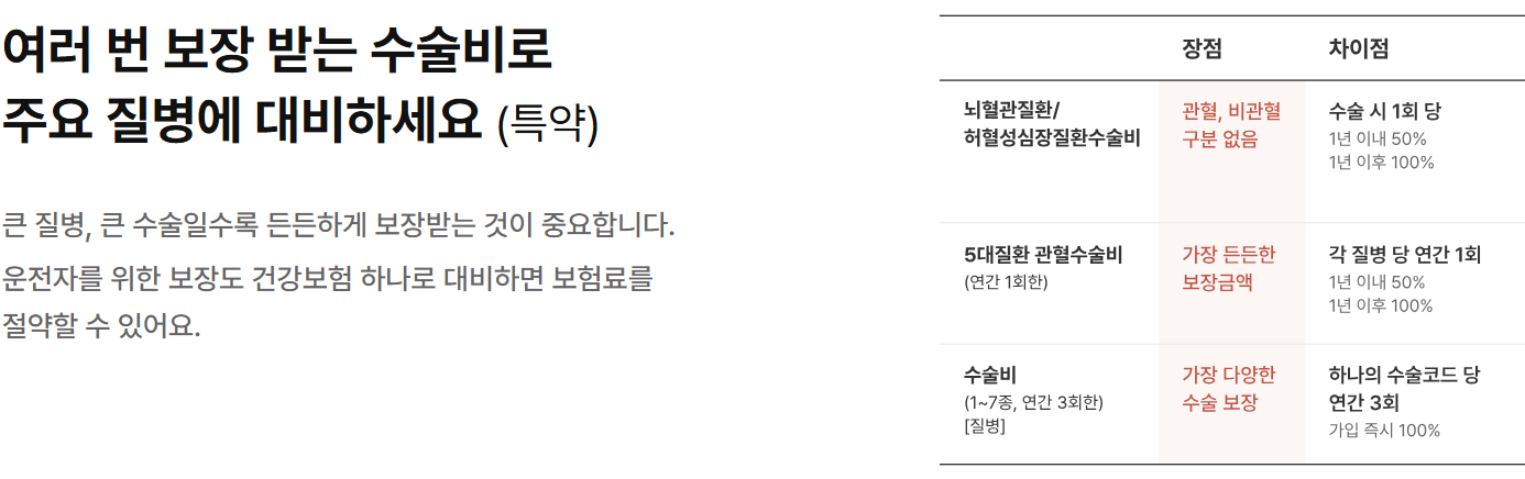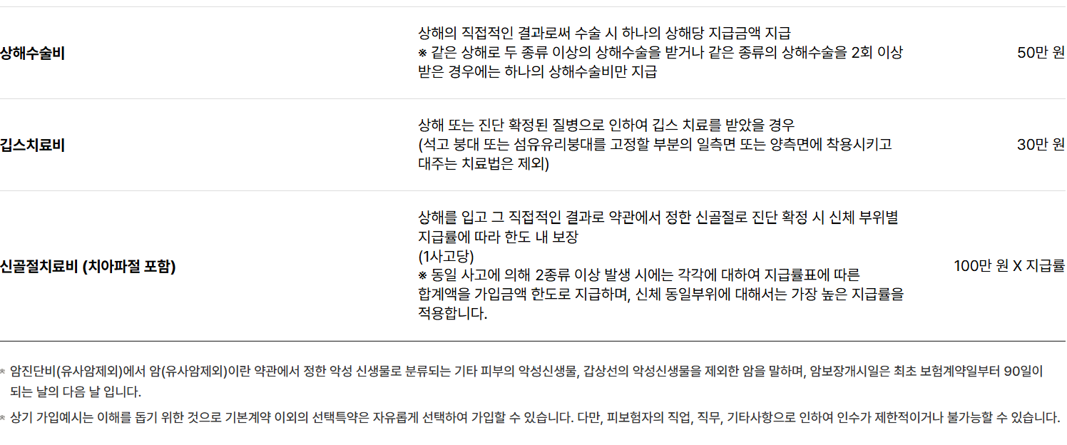 | 암 진단/수술 | 일반암, 유사암(갑상선암 등), 고액암, 표적항암치료 |