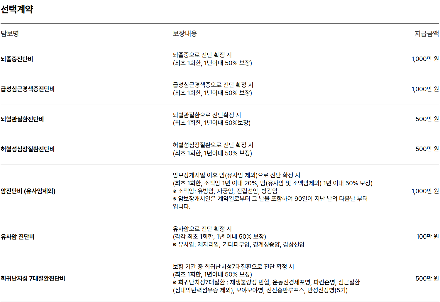 | 치매 보장 | 경도~중증 치매 진단 시 단계별 보장금 지급 |