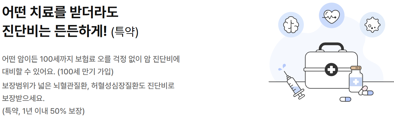 | 특약 구성 | 생활질병, 여성질환, 당뇨, 치매, 백내장 등 맞춤 설계 |