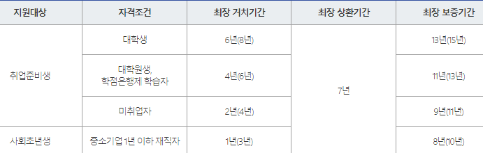 괄호 안은 군입대예정자(군필자,면제자,여성 제외)에 대한 추가 2년 거치 가능기간을 말합니다.