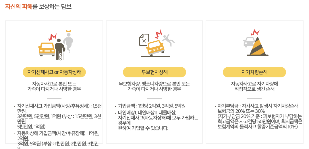 KB다이렉트 자동차 보험 보장내용