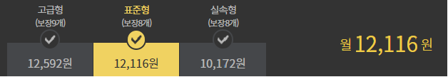 나이는 30대 기준으로 했으며, 보험료가 바로 조회되며 보험료는 고급형, 표준형, 실속형 플랜과 납입기간에 따라 달라집니다.