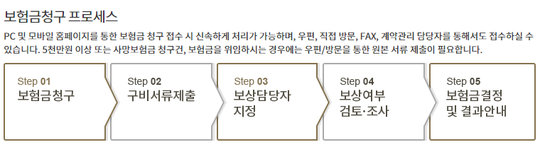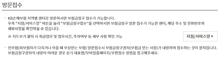 보험금 청구는 pc 홈페이지 접수, 앱 접수, 모바일 홈페이지 접수 , 우편접수, 방문접수, FAX 접수가 있습니다.