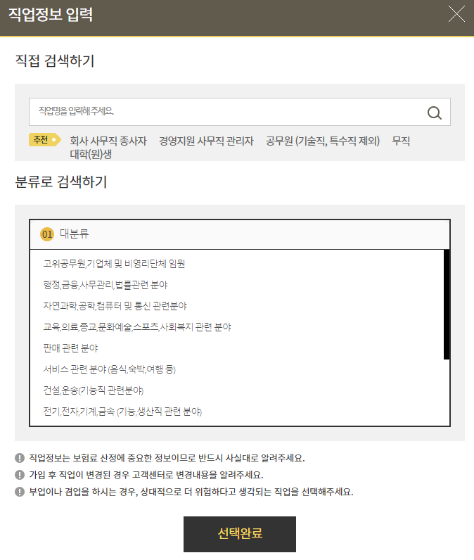 보험료 조회를 직접해보시면서 하는 것이 자신이 어떤 보장이 필요한지에 대한 종류와 담보 가입금액을 설정해보는 것이 좋기 때문에 직접 보험료 조회 한번 해보시기 바랍니다.