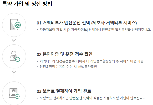 (신차의 경우 점수 도달시 당사에 계약변경 요청) - 해당 특약은 커넥티드카서비스 가입차량 중 안전운전점수 제공 서비스 가능 차량에 대해 가입 가능합니다.