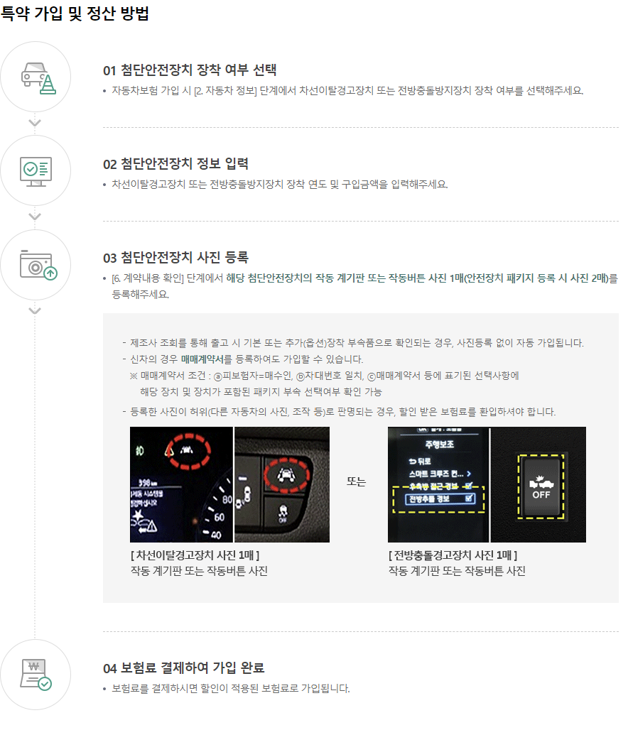 - 사진을 준비할 여유가 없는 경우, 첨단안전장치 할인 특약을 제외하고 보험을 가입해 주세요.