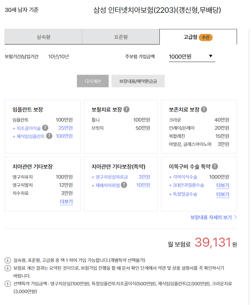 삼성생명 인터넷치아보험 특징 보장내용 보험료 계산방법 및 치아보험 가입 시 주의사항