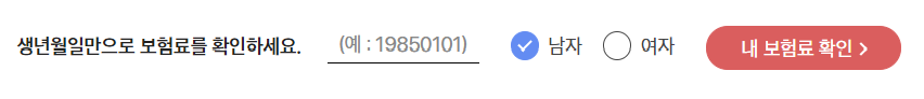 먼저 생년월일 및 성별 입력 후 내 보험료 확인을 클릭합니다. 그럼 바로 아래와 같이 보험료가 나옵니다.