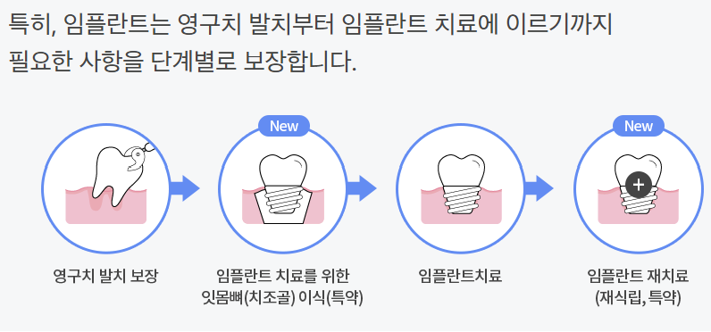 | 임플란트치료 (영구치발치 1개당)(최초계약의 계약일로부터 2년 이내 연간 3개 한도) | 50만원 | |