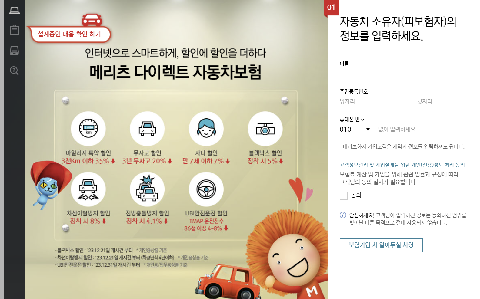 메리츠화재 다이렉트 자동차보험 보장내용 할인특약 보장내용 보험료 약관 정리 시작하겠습니다.