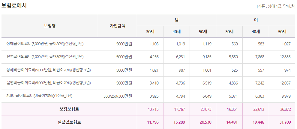 - 주4) 실납입보험료는 실손의료비보장 안정화 할인Ⅲ이 반영된 보험료 입니다.