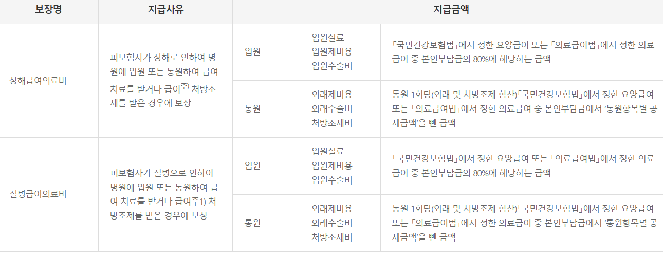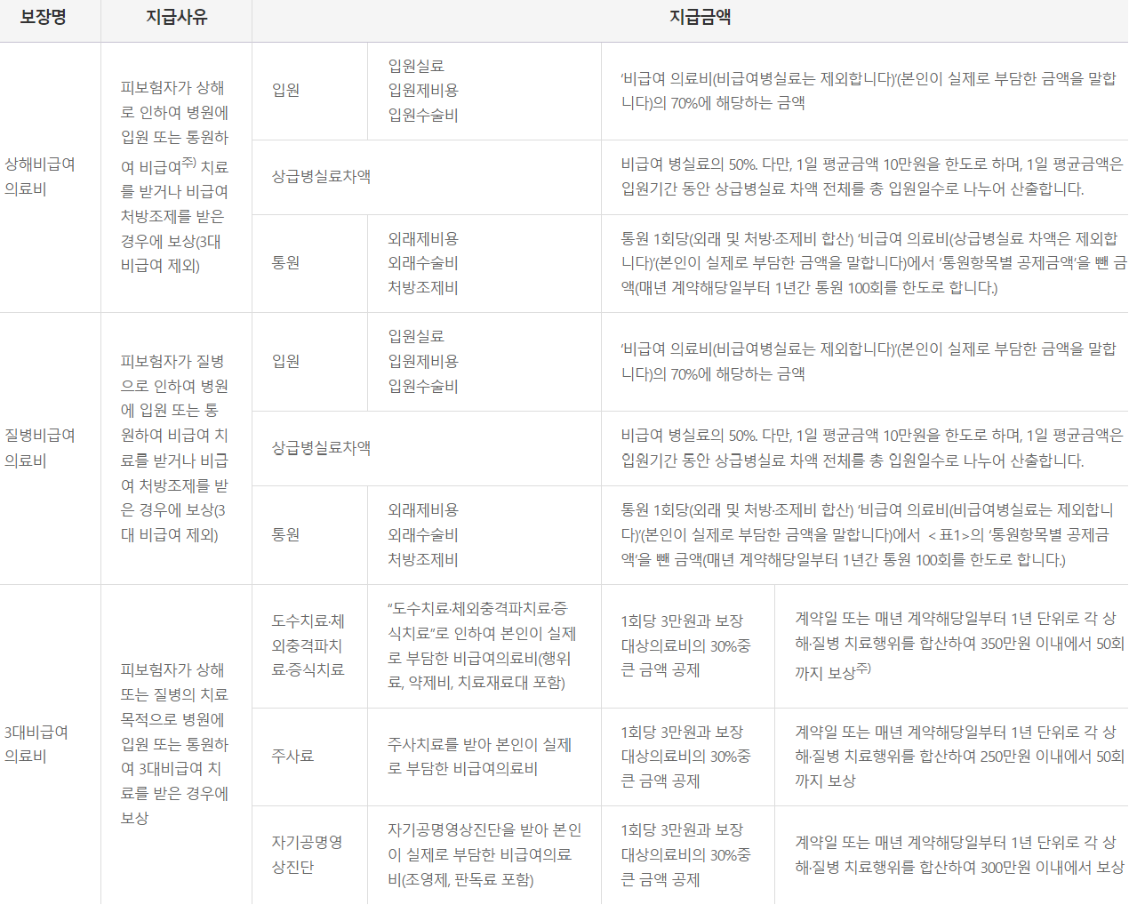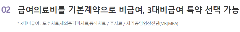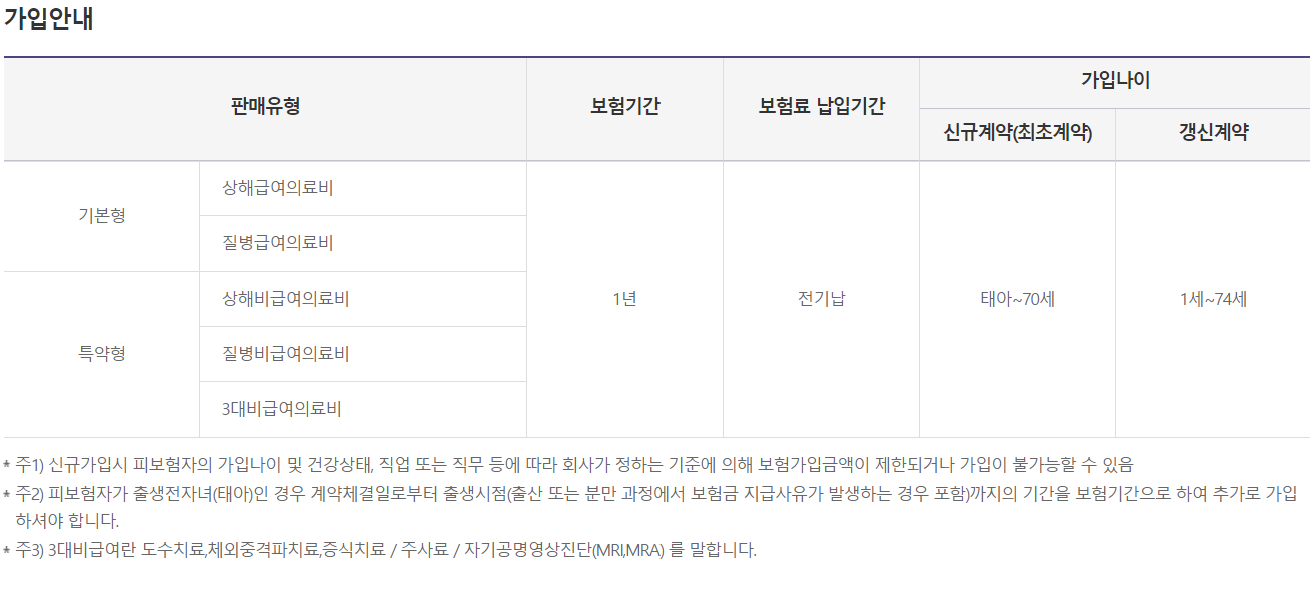 - 주1) 1년만기, 1년납 기준으로 최대 5년 동안 매년 자동갱신되며, 5년이후 재가입을 통해 100세까지 보상받으실 수 있습니다.