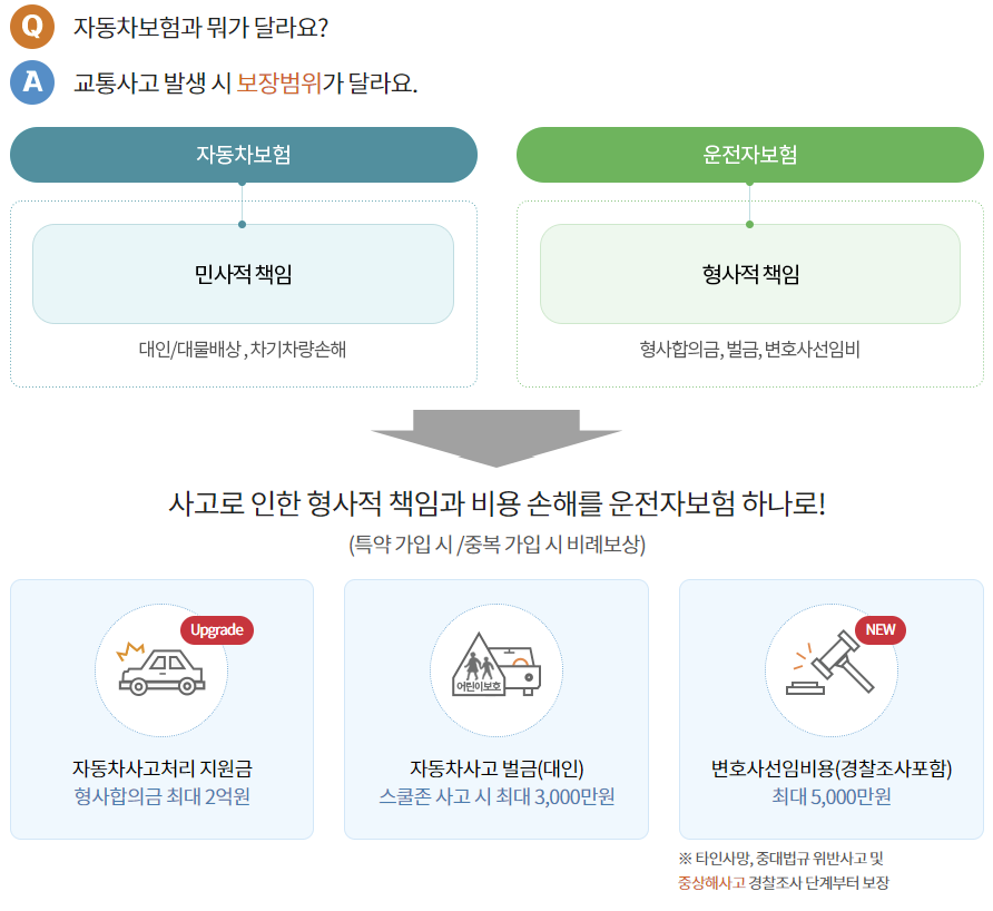 자세한 운전자보험 보장은 약관 및 설명서를 참고 하셔도 됩니다.