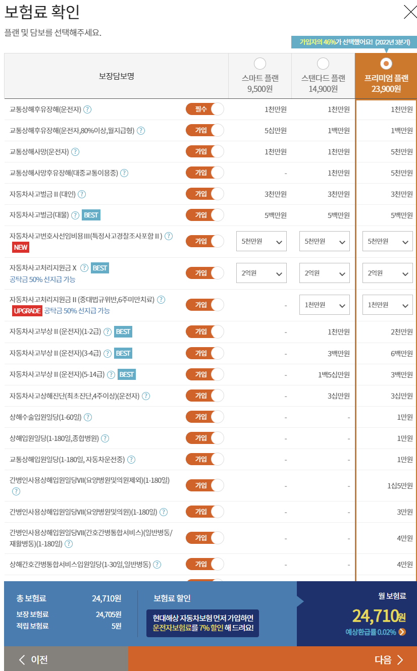 보험료는 플랜, 보장 가입 등 여러 조건에 따라 달라지므로 직접 조회해보시고 결정하는 것이 좋습니다.