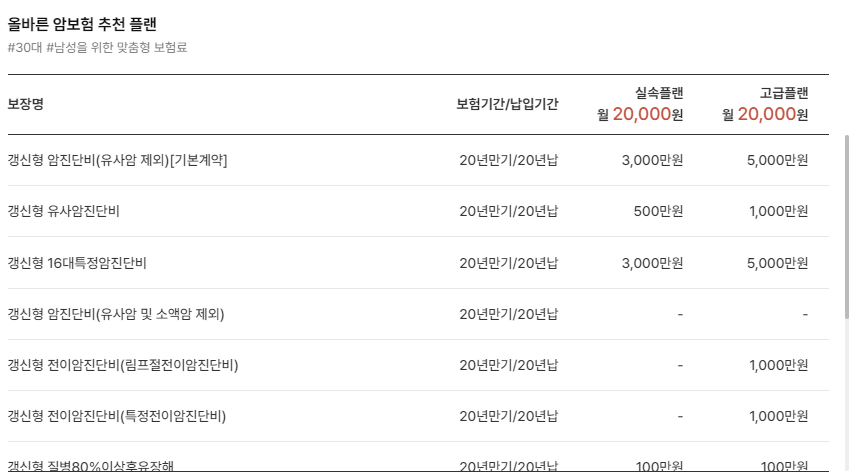 보험료는 플랜 및 사람마다 달라지므로 직접 조회해보시는 것이 가장 좋습니다.