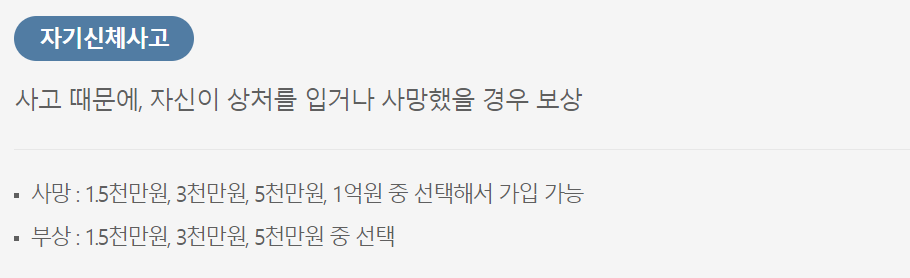 - 사고 시 받을 수 있는 보상에는 어떤 것들이 있는지 확인