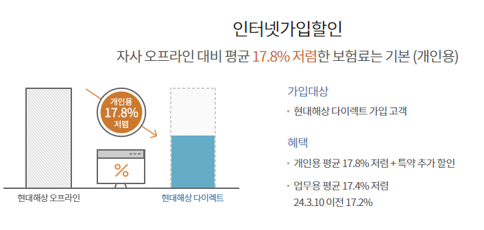 - 2.2% 할인 (하이카서비스 등 일부 특약 보험료를 제외한 전담보 기준 할인이 적용됩니다.)