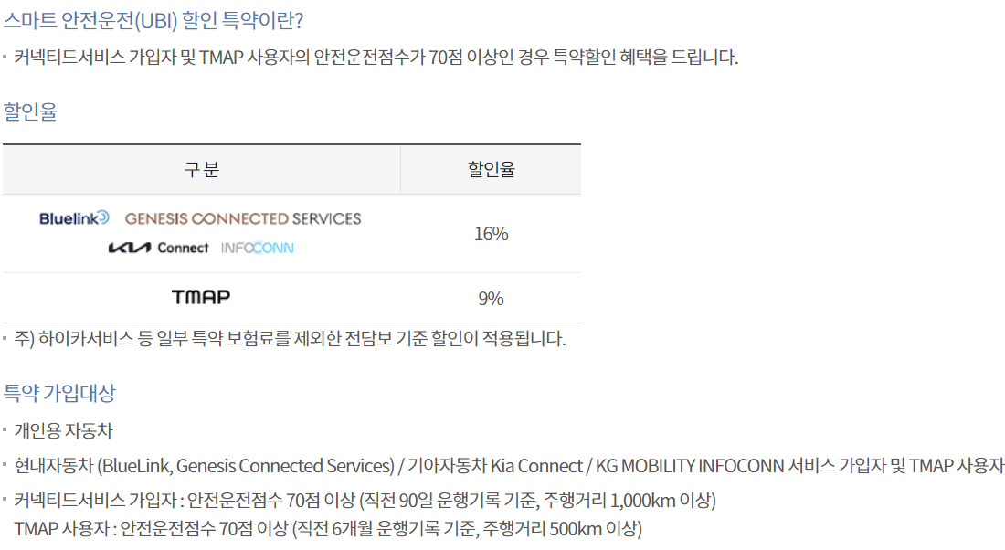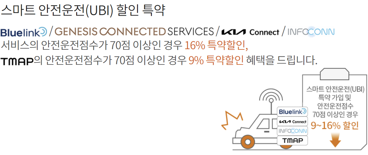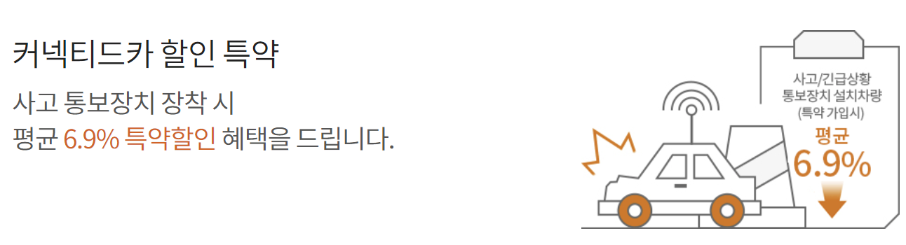 - 커넥티드카(사고 통보장치 장착)에 대하여 특약할인 혜택을 드립니다.