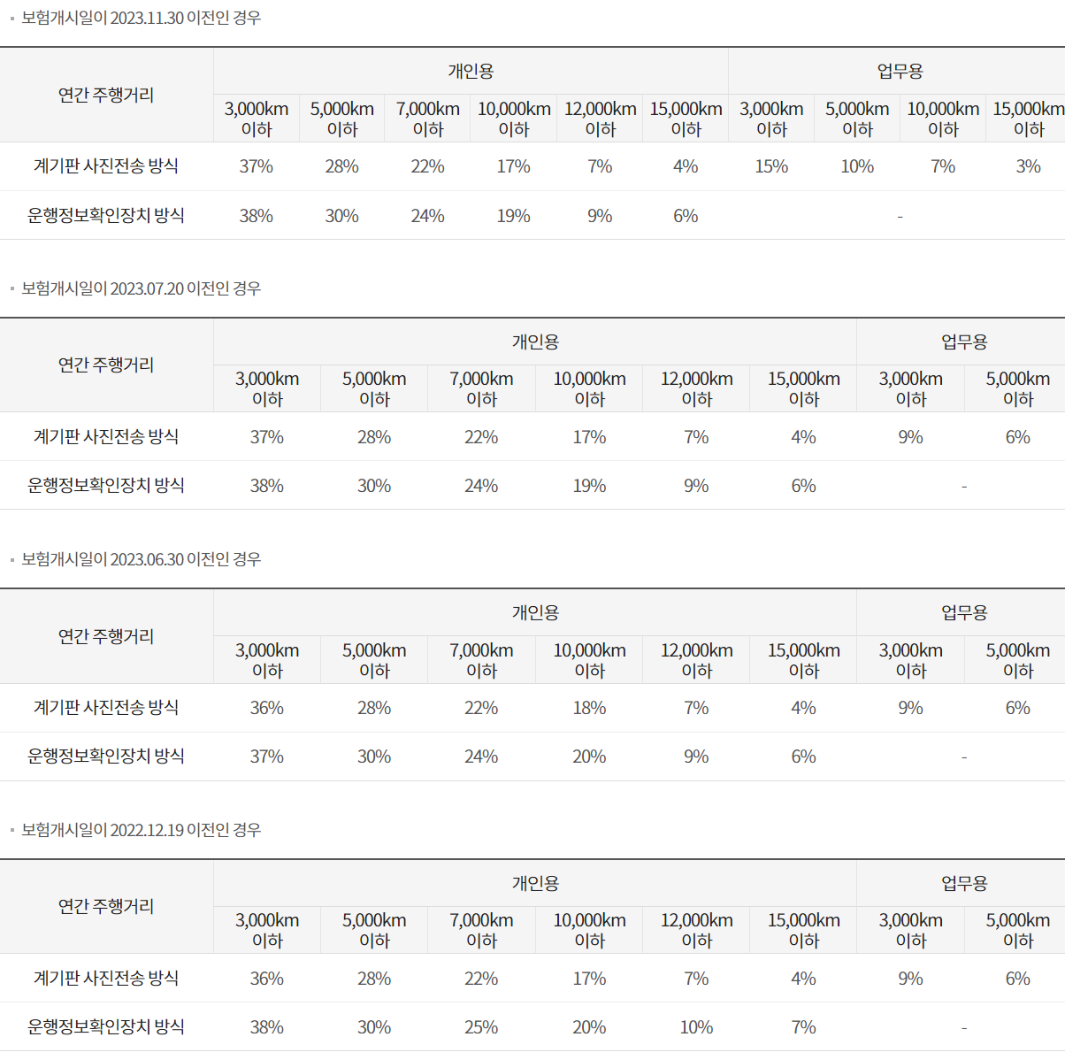 ECO마일리지 할인특약은 보험 개시일에 따라 할인률이 달라 밑에 개시일 기준 할인률을 확인하세요!