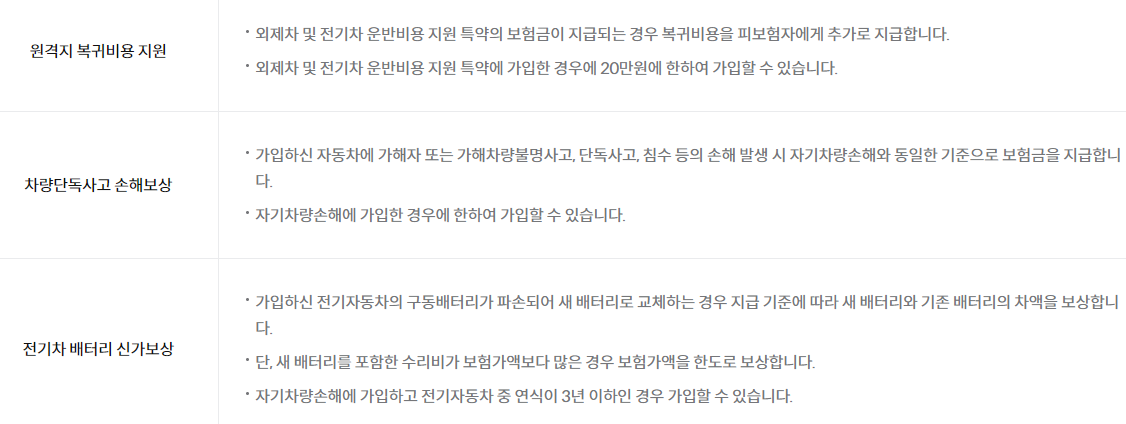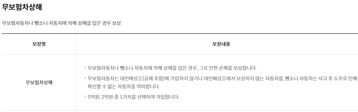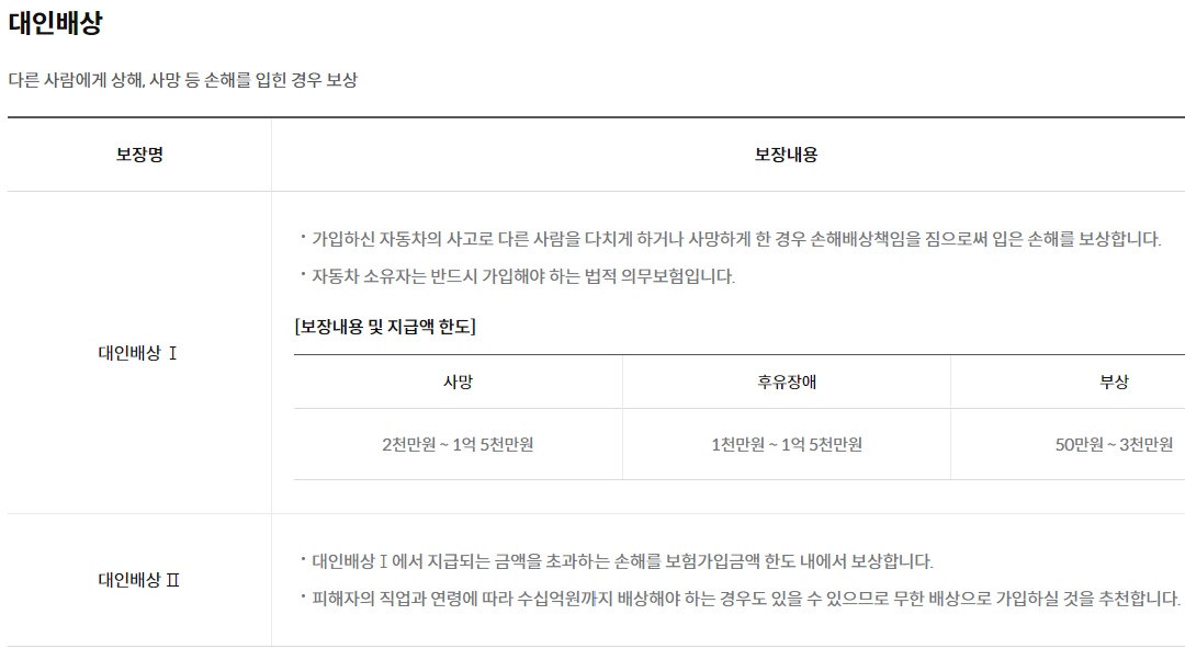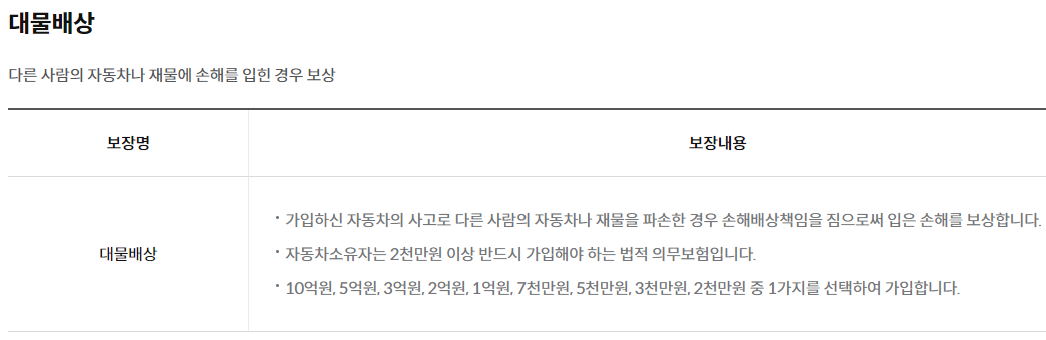 - 의무보험은 최소한 가입해야 하지만, 보장 범위가 제한적입니다.