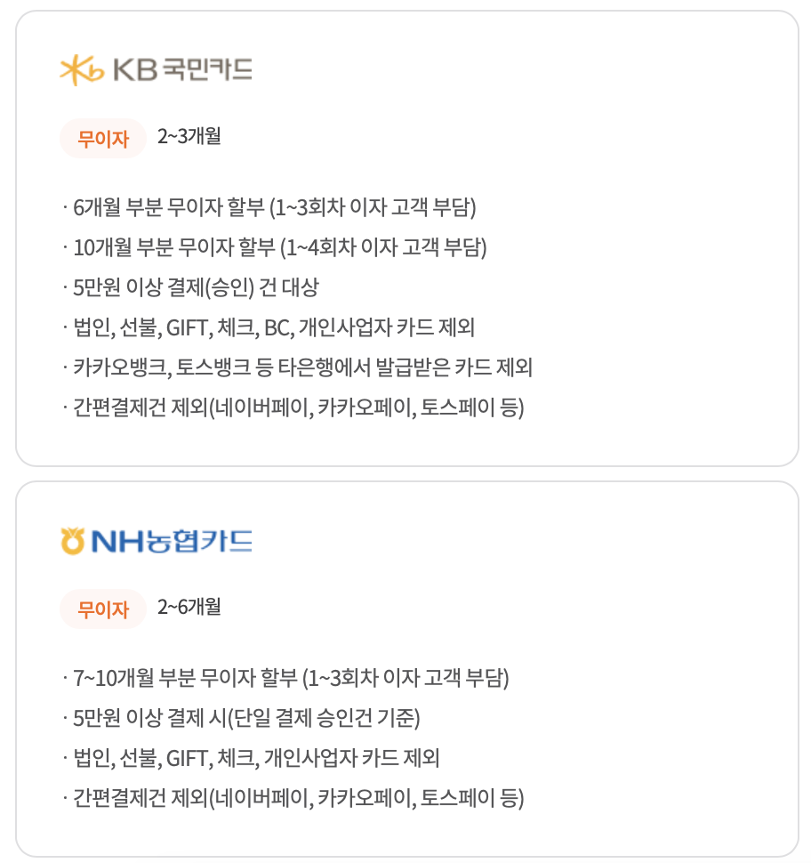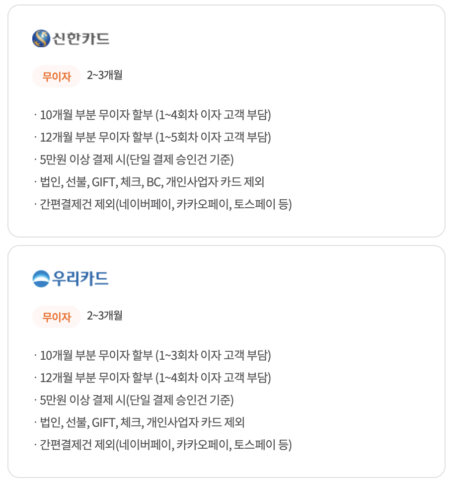 - 신한카드 결제 2~3개월 무이자 할인 및 카드사별 혜택 제공: 신한카드로 납입하는 경우