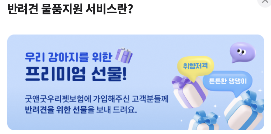 현대해상 다이렉트 굿앤굿우리펫보험에 가입하시면 다음과 같은 가입선물을 드립니다.