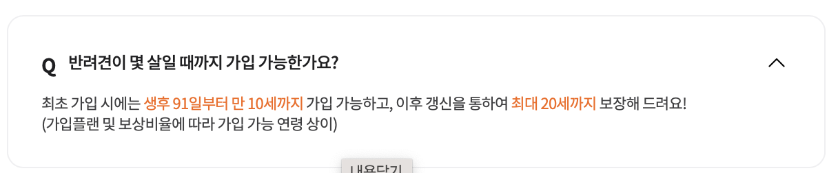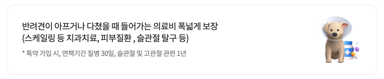- 반려견의 건강상태: 반려견이 질병 또는 상해를 입은 경우 가입이 제한될 수 있습니다.