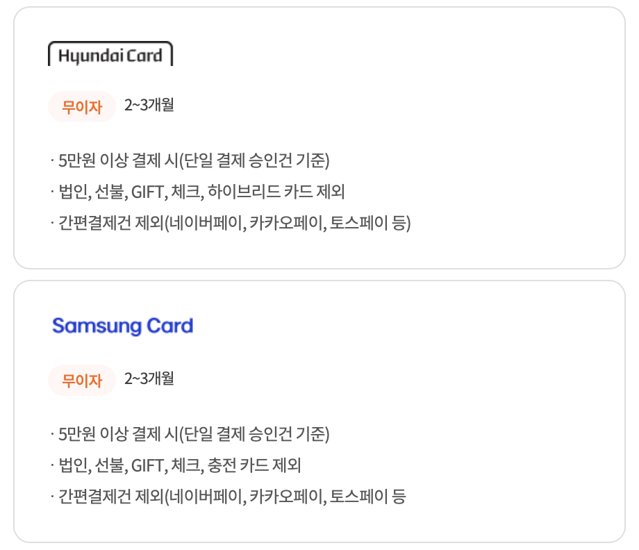 - 하나카드 결제 2~3개월 무이자 할인 및 카드사별 혜택 제공: 하나카드로 납입하는 경우