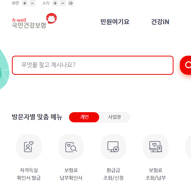 PC를 이용하는 방법은 위 국민건강보험 홈페이지에 접속하여