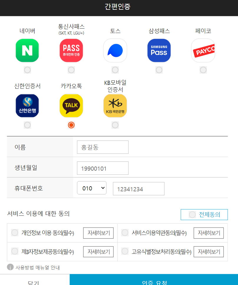 자신의 방법으로 인증을 한 후 로그인을 완료하면