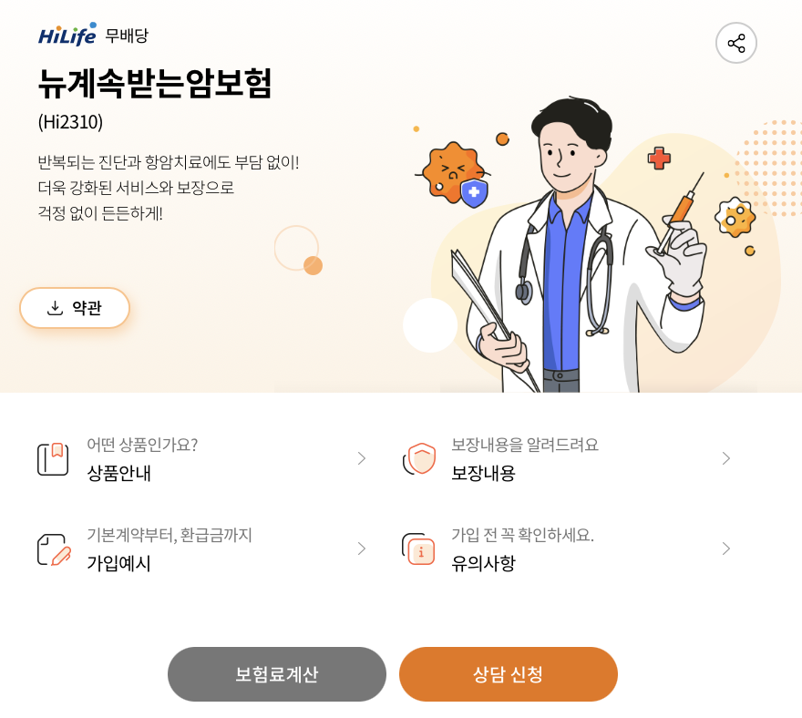 현대해상 뉴계속받는암보험 보장내용 보장금액 보험료 조회 가입방법 청구서류 고객센터 전화번호