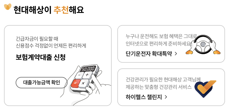 이외에도 특정 보험상품에 대한 할인 이벤트도 진행하고 있으니, 현대해상 홈페이지 또는 앱을 통해 확인하시기 바랍니다.
